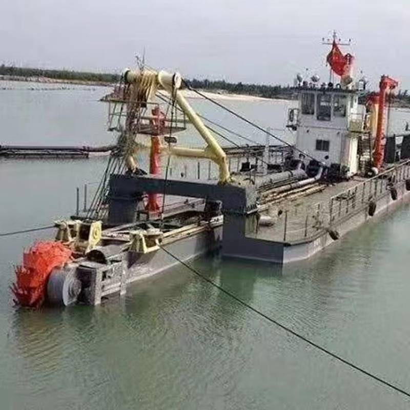 本船船长适配疏浚作业需求,船宽、型深及设计吃水根据作业水域优化设计,兼顾浅水区通行与作业稳定性。船体采用钢质焊接结构,为单甲板、单底,船体整体结构坚固,抗风浪、抗冲击能力强,适配近海、港口及河道等复杂水域作业。船首设有绞刀装置、吸泥管安装平台,配备大功率绞刀、吸泥泵及输送管道系统,船中部布置动力舱、控制系统,船尾部设有操作室及定位装置。本船以无动力配置为主,不配备自主推进系统,需依靠拖船牵引移动,适配固定区域长期疏浚作业;如需自航式配置,仅设单舵操纵装置(多数场景下不配备舵)。两种模式均配备定位桩,作业时通过定位桩精准固定船体位置,替代传统锚泊装置,有效抵御水流、风浪冲击,确保挖掘精度和输送效率稳定。