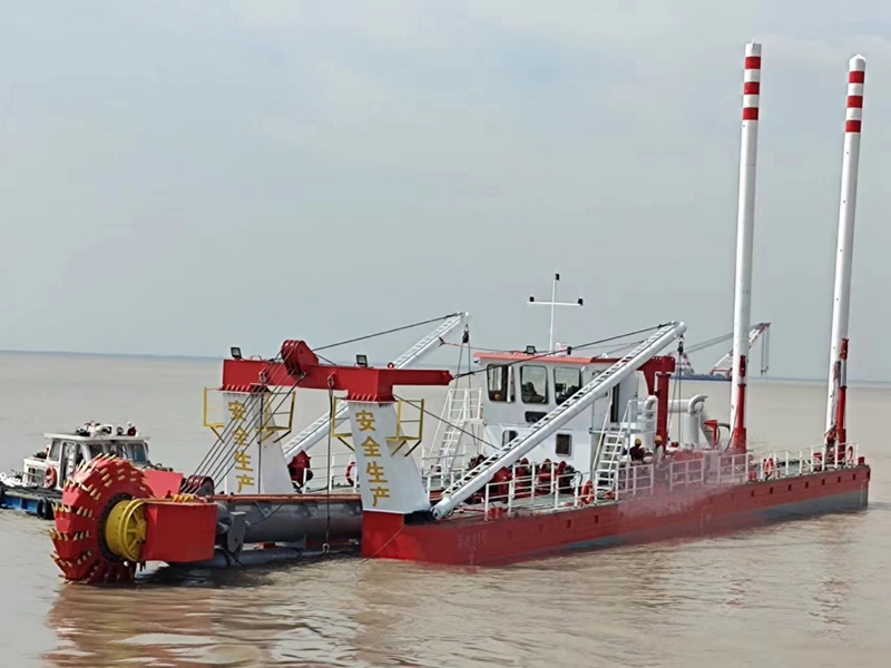 本船船长适配疏浚作业需求,船宽、型深及设计吃水根据作业水域优化设计,兼顾浅水区通行与作业稳定性。船体采用钢质焊接结构,为单甲板、单底,船体整体结构坚固,抗风浪、抗冲击能力强,适配近海、港口及河道等复杂水域作业。船首设有绞刀装置、吸泥管安装平台,配备大功率绞刀、吸泥泵及输送管道系统,船中部布置动力舱、控制系统,船尾部设有操作室及定位装置。本船以无动力配置为主,不配备自主推进系统,需依靠拖船牵引移动,适配固定区域长期疏浚作业;如需自航式配置,仅设单舵操纵装置(多数场景下不配备舵)。两种模式均配备定位桩,作业时通过定位桩精准固定船体位置,替代传统锚泊装置,有效抵御水流、风浪冲击,确保挖掘精度和输送效率稳定。